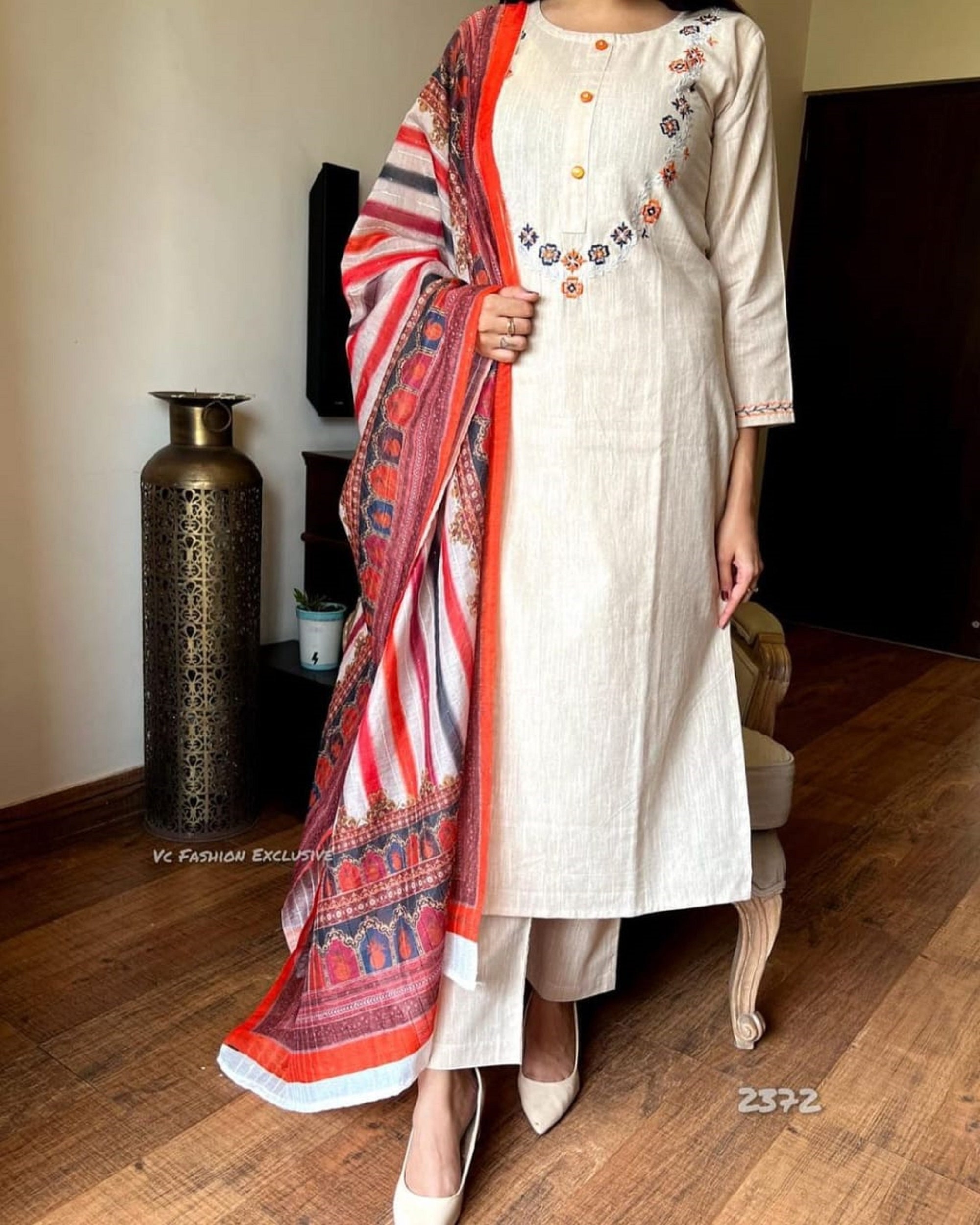 Desinger Cotton Kurti Palazzo And Dupatta Set Designer Kurti Etsy